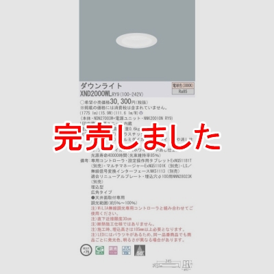 パナソニック LEDダウンライト 埋込穴φ75 電球色 調光【NDN27003W + NNK20010N RY9】 XND2000WLRY9