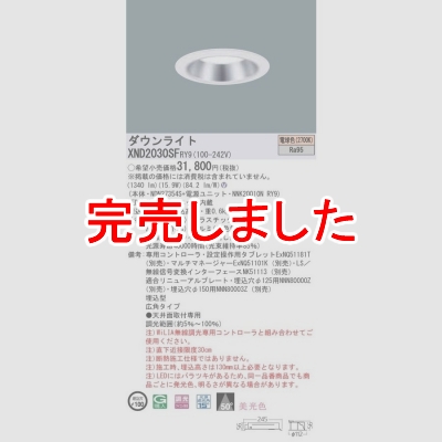 パナソニック LEDダウンライト 埋込穴φ100 電球色 調光【NDN27354S + NNK20010N RY9】 XND2030SFRY9