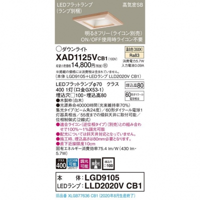 パナソニック LEDダウンライト 埋込穴φ100 温白色 浅型8H 高気密SB形 ビーム角24度 集光 調光 XAD1125VCB1