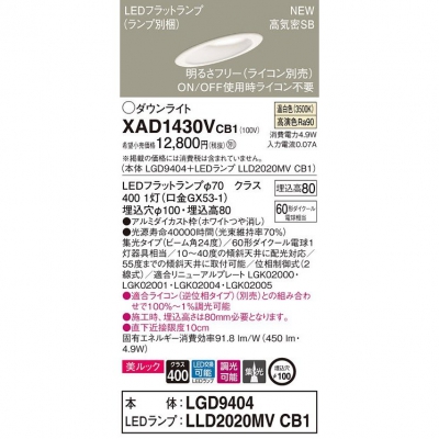 パナソニック LEDダウンライト 傾斜天井用 埋込穴φ100 温白色 浅型8H 高気密SB形 ビーム角24度 集光 調光 美ルック XAD1430VCB1
