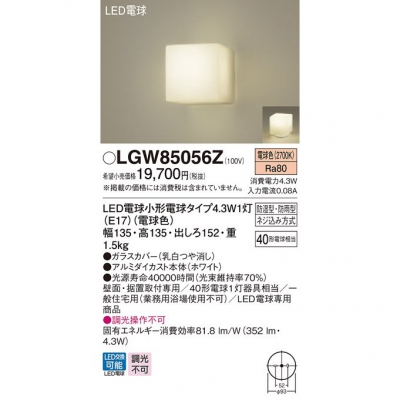 パナソニック LEDポーチライト 電球色 壁直付型 据置取付型 防湿型 防雨型 LGW85056Z