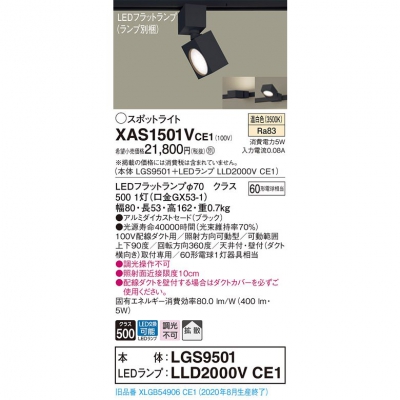 パナソニック LEDスポットライト 配線ダクト取付型 温白色 【LGS9501 + LLD2000V CE1】 XAS1501VCE1
